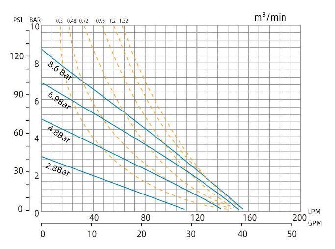 - Una variedad de opciones de flujo, hasta 988 lpm